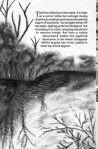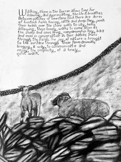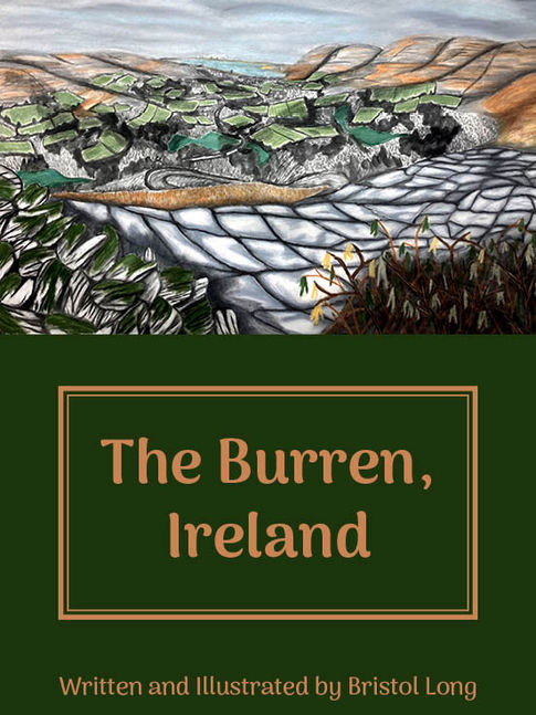 I went on hikes and immersed myself in the landscape writing poetry then came back to the studio and illustrated the poems I wrote. While doing this, I also worked on a large 3ft. x 7ft. landscape that showcased certain qualities of the Burren (cover illustration). Then when completed I took a two-week break, not looking at the illustration, and when I came back I wrote a poem (back cover) about the large illustration. The project explored how art and words are interchangeable. One can write about a landscape and an artist can illustrate those words through the writing, but an artist can illustrate a landscape and a writer can write about the landscape through the art.